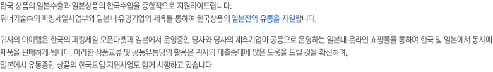 À§³Ê±â¼ú¢ßÀÇ ÆÄÅ·¼¼ÀÏ¿¡¼´Â Çѱ¹»óǰÀÇ ÀϺ»½ÃÀå ÁøÃâÀ» Áö¿øÇϱâ À§ÇÑ Àü´ãÀηÂÀ» È®º¸ÇÏ°í ±Í»çÀÇ ¿ì¼öÇÑ Á¦Ç°Àº ÆÄÅ·¼¼ÀÏÀ» ÅëÇÏ¿© Çѱ¹ »Ó¸¸ ¾Æ´Ï¶ó ÀϺ»°í°´¿¡°Ô ÆÇ¸ÅµÇµµ·Ï ÃÖ¼±À» ´ÙÇϰí ÀÖ½À´Ï´Ù.