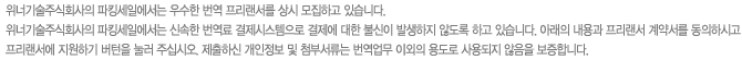 À§³Ê±â¼úÁÖ½Äȸ»ç(ÀÌÇÏ "°©"À̶ó ÇÑ´Ù)¿Í ¹ø¿ª»ç(ÀÌÇÏ "À»"À̶ó ÇÑ´Ù)»çÀÌ¿¡ ¹ß»ýÇÏ´Â ¹ø¿ª¾÷¹«¿¡ ´ëÇÏ¿© ü°áÇÑ´Ù. Á¦1Á¶ "À»"Àº ¹ø¿ªÀ» ¼öÇàÇÔ¿¡ ÀÖ¾î¼ ´ÙÀ½»çÇ×À» ÁؼöÇÏ¿© ¹ø¿ª¿¡ ÀÓÇÑ´Ù. ¨ç "À»"Àº ¾àÁ¤µÈ ³³±âÀϱîÁö ¹ø¿ªÀ» ¿Ï¼ºÇÏ¿© "°©"ÀÌ ¿ä±¸ÇÏ´Â ¹®¼ ÇüÅ·ΠÁ÷Á¢, ¿ìÆí ȤÀº À̸ÞÀÏ µîÀ¸·Î Á¦°øÇÏ¿©¾ß ÇÑ´Ù. ¨è "À»"Àº ¹ø¿ª ¿Ï·áµÈ ¿ø°í¿¡ ´ëÇÏ¿© ¡°°©¡±ÀÇ ¼öÁ¤¿ä±¸°¡ ÀÖÀ» °æ¿ì, ÀÌ¿¡ Ãæ½ÇÈ÷ ÀÀÇØ¾ß ÇÑ´Ù. ¨é "À»"Àº "°©"ÀÌ Á¦°øÇÑ ¿øº»¹®¼ ¹× ¹ø¿ª¿Ï·áµÈ ¹®¼¸¦ º¹»ç ȤÀº À̸ÞÀÏÀ» ÅëÇÑ Àç¹èÆ÷, ÀÎÅÍ³Ý °Ô½Ã µîÀÇ ÇàÀ§¸¦ ÇÒ ¼ö ¾ø´Ù. ¨ê "À»"Àº ¹ø¿ªÀÛ¾÷ ÁøÇà Áß "°©"ÀÇ Áß°£ °Ë¼ö ¿äû¿¡ ´ëÇØ ¼º½ÇÈ÷ ÀÀÇÏ¿©¾ß ÇÑ´Ù. Á¦2Á¶ "°©"Àº ¹ø¿ª¾÷¹«¸¦ "À»"¿¡°Ô Á¦°øÇϸç, ¾÷¹«°¡ ³¡³ª¸é ±×¿¡ ´ëÇÑ º¸¼ö¸¦ ¾Æ·¡ÀÇ ±âÁØ¿¡ ¸ÂÃß¾î Áö±ÞÇÑ´Ù. ¨ç "°©"Àº "À»"¿¡°Ô ¾àÁ¤¾×À» Áö±ÞÇÑ´Ù. Åë»ó 300´Ü¾î/Àå.±âÁØÀ¸·Î ³À̵µ,Àü¹®¼º,±ä±Þ¼º µîÀ» °¨¾ÈÇÏ¿© Áö±ÞÇÑ´Ù. ¨è "°©"Àº "À»"ÀÌ Á¦°øÇÑ ¹ø¿ª¿ø°í¿¡ ´ëÇØ ¹ø¿ª¿¡ Å« ÇÏÀÚ°¡ ¾øÀ» °æ¿ì ¾àÁ¤ÀϱîÁö "À»"ÀÌ Åë°íÇÑ ÀºÇà°èÁ¿¡ ÁöºÒÇÑ´Ù.(´Ü, Ưº°ÇÑ °æ¿ì ÀÌ ±â°£À» Á¶Á¤ÇÒ ¼ö ÀÖÀ¸¸ç, ÀÌ¿¡ ´ëÇØ¼´Â "À»"°ú º°µµÀÇ ÇÕÀǸ¦ °ÅÃÄ¾ß ÇÑ´Ù.) ¨é ¹ø¿ªÀÌ ¿Ï·áµÈ º¸¼ö´Â 10ÀÏ À̳»¿¡ Áö±ÞÇϸç,ƯÀÌÇÑ °æ¿ì¿¡ ÇÑÇÏ¿© ´Þ¸®ÇÒ ¼ö ÀÖ´Ù. Á¦3Á¶ "À»"Àº õÀçÁöº¯ ¶Ç´Â ÇÕ´çÇÑ ÀÌÀ¯¾øÀÌ ¹ø¿ªÀ» Áßµµ¿¡ Áß´ÜÇÒ ¼ö ¾ø´Ù. Á¦4Á¶ "°©"Àº Áßµµ¿¡ õÀçÁöº¯ ¶Ç´Â ÇÕ´çÇÑ ÀÌÀ¯¾øÀÌ "À»"¿¡°Ô ¹ø¿ª Áß´ÜÀ» ¿ä±¸ÇÒ ¼ö ¾ø´Ù. ´Ü, °í°´ÀÌ Áßµµ¿¡ ¹ø¿ªÀÇ·Ú¸¦ Ãë¼ÒÇÒ °æ¿ì´Â ¿¹¿Ü·Î ÇÑ´Ù. Á¦5Á¶ "À»"Àº ½ÅÀǼº½ÇÀÇ ¿øÄ¢¿¡ ÀÔ°¢, ¹ø¿ª¿¡ ÃÖ¼±À» ´ÙÇØ¾ß ÇÑ´Ù."°©"ÀÌ ¹ø¿ª¿¡ ´ëÇØ ÇÕ¸®ÀûÀÎ »çÀ¯¼¸¦ ÷ºÎÇÏ¿© ¹ø¿ªÀÇ ÇÏÀÚ¸¦ ÁöÀûÇϰí ÁöÀû »çÇ×ÀÌ Àüü ³»¿ëÀÇ 10%¸¦ ÃʰúÇÒ °æ¿ì "°©"Àº "À»"¿¡°Ô ¹ø¿ª·á¸¦ Áö±ÞÇÏÁö ¾Æ´ÏÇÑ´Ù. Á¦6Á¶ º» °è¾àÀ¸·Î »ý»êµÇ´Â ¹®¼ÀÇ ÆÇ±ÇÀº "°©"¿¡°Ô ÀÖÀ¸¸ç, "À»"Àº ¾î¶°ÇÑ °æ¿ì¿¡µµ À̸¦ µ¶ÀÚÀûÀ¸·Î À¯Åë, ¹èÆ÷ÇÒ ¼ö ¾ø´Ù. Á¦8Á¶ ÀÌ °è¾à¿¡¼ÀÇ ºñ¹Ð»çÇ×À̶õ ¹®¼, µµ¸é, ±× ¹ÛÀÇ ¼·ù¿¡ ±âÀçµÇ°Å³ª ÀüÀÚÀû ¶Ç´Â ±¤ÇÐÀûÀ¸·Î ±â·ÏµÈ "°©"°ú "°©"ÀÇ °í°´»ç°¡ º¸À¯ÇÑ ±â¼ú»ó, ¿µ¾÷»óÀÇ ¸ðµç Áö½Ä ¹× Á¤º¸·Î "°©"ÀÌ "À»"¿¡°Ô °³½ÃÇÑ ½ÃÁ¡¿¡¼ "°©"ÀÌ ºñ¹Ð·Î Ãë±ÞÇÏ´Â °ÍÀ» ¸»ÇÑ´Ù. ´Ü, ´ÙÀ½ °¢ È£ÀÇ Çϳª¿¡ ÇØ´çÇÏ´Â °ÍÀ» Á¦¿ÜÇÑ´Ù. ¨ç "À»"ÀÌ "°©"À¸·ÎºÎÅÍ °³½Ã ¹ÞÀº ½ÃÁ¡¿¡ ÀÌ¹Ì °øÁöµÇ¾î ÀÖ´Â °Í. ¨è "À»"ÀÌ "°©"À¸·ÎºÎÅÍ °³½Ã ¹ÞÀº ÈÄ¿¡ "À»"ÀÇ °íÀÇ ¶Ç´Â °ú½Ç¿¡ ÀÇÇÏÁö ¾Ê°í °øÁöµÈ »ç½ÇÀ» "À»"ÀÌ Áõ¸íÇÒ ¼ö ÀÖ´Â °Í. ¨é "À»"ÀÌ "°©"À¸·ÎºÎÅÍ °³½Ã ¹Þ±â Àü¿¡ "À»"ÀÌ ½º½º·Î ¾ò°Å³ª Á¤´çÇÑ ±Ç¸®¸¦ °¡Áø Á¦ 3ÀÚ¿¡°Ô¼ ÀÔ¼öÇÑ »ç½ÇÀ» Áõ¸íÇÒ ¼ö ÀÖ´Â °Í. Á¦9Á¶ "À»"Àº ºñ¹ÐÀ¯Áö Àǹ«À» ¾Æ·¡ÀÇ ±âÁØ¿¡ µû¶ó À¯ÁöÇÏ¿©¾ß ÇÑ´Ù. ¨ç "À»"Àº ¹ø¿ª¾÷¹«ÀÇ ³»¿ëÀ» ºñ¹Ð»çÇ×À¸·Î °³½ÃÇÏÁö ¾ÊÀ¸¸ç, "°©"ÀÇ ¼¸é¿¡ ÀÇÇÑ »çÀü ½Â³« ¾øÀÌ´Â ¿ø°í ¹× ¹ø¿ª¹®À» Á¦3ÀÚ¿¡°Ô °³½Ã, ´©¼³ÇÏ´Â °ÍÀ» ±ÝÁöÇÑ´Ù. ¨è "À»"Àº ¹ø¿ª¾÷¹« ¼öÇàÀ» À§ÇØ "°©"°ú "°©"ÀÇ °í°´»ç·ÎºÎÅÍ ÀÔ¼öÇÑ Âü°íÀÚ·á µîÀ» ÇØ´ç ¹ø¿ª¾÷¹« ¼öÇุÀ» À§ÇÏ¿© »ç¿ëÇÏ¸ç ºñ¹Ð»çÇ×À¸·Î Ãë±ÞÇÏ¿© À̰ÍÀ» Á¦ 3ÀÚ¿¡°Ô °³½Ã, ´©¼³Çؼ´Â ¾ÈµÈ´Ù. Á¦10Á¶ "°©"Àº "À»"¿¡°Ô ¹ø¿ª¡¤Å뿪 ¾÷¹« ¼öÇà ½Ã¿¡ ¾ðÁ¦¶óµµ ÇØ´ç ¾÷¹«ÀÇ Àǹ« ÀÌÇà »óȲ°ú ºñ¹ÐÀ¯Áö ¼öÇà»óȲÀ» Á¶»çÇÒ ¼ö ÀÖ´Ù. Á¦11Á¶ ÀÌ °è¾à¼ÀÇ ¹ø¿ª»ç µî·Ï ±â°£Àº ¹ø¿ª¿Ï·á ȤÀº ÁßÁöµÈ´Ù ÇÒÁö¶óµµ °¢ ¾÷¹« ¼öÇà ÈÄ 2³â°£ È¿·ÂÀ» °®´Â´Ù. Á¦12Á¶ ±âŸ ¨ç ÀÌ °è¾àÀº ¡°°©¡±°ú ¡°À»¡±ÀÇ »óÈ£ ÇÕÀÇ »çÇ×À̹ǷΠ¼º½Ç°ú ½ÅÀÇ·Î ÀÌÇàÇÑ´Ù. ¨è "°©"°ú "À»"Àº õÀçÁöº¯À̳ª ±¹°¡ ºñ»ó»çÅ ¹× Æøµ¿, ÀüÀï µî ºÒ°¡Ç×·ÂÀÇ »çÀ¯·Î ¹ß»ý½ÃŲ ¼ÕÇØ ¹× Àǹ«ºÒÀÌÇà¿¡ ´ëÇØ¼´Â Ã¥ÀÓÀ» ÁöÁö ¾Ê´Â´Ù. ¨é ÀÌ °è¾à¼¿¡ ±âÀçµÇ¾î ÀÖÁö ¾ÊÀº »çÇ×Àº ÀÏ¹Ý »ó°Å·¡ °üÇà¿¡ µû¸£¸ç ÀÌ °è¾à°ú °ü·ÃÇÏ¿© ºÐÀïÀÌ ÀϾ °æ¿ì ¹ýÀû ¼Ò¼Û±â°üÀº "°©"ÀÇ °üÇÒ¹ý¿øÀ¸·Î ÇÑ´Ù.